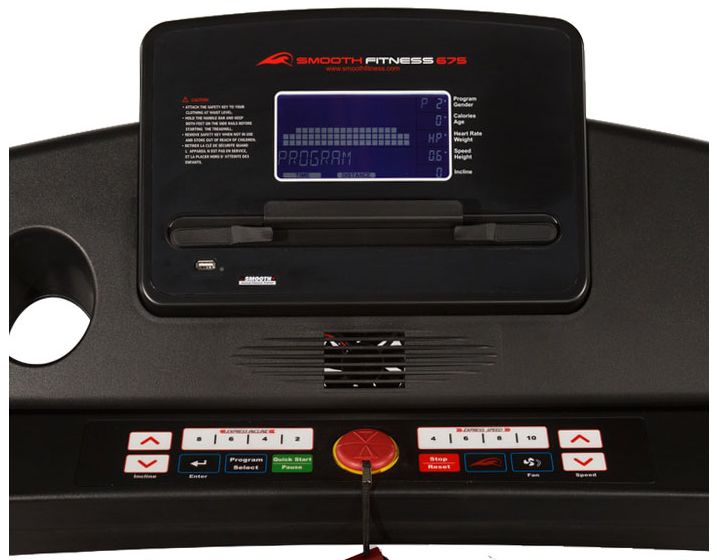 The 2012 Smooth 6.75 treadmill version comes with 15 programs of which 1 Manual, 3 preset Incline, 4 preset Speed, 3 Combination, 1 Heart rate, 1 Fitness Test and 2 Custom programs.
